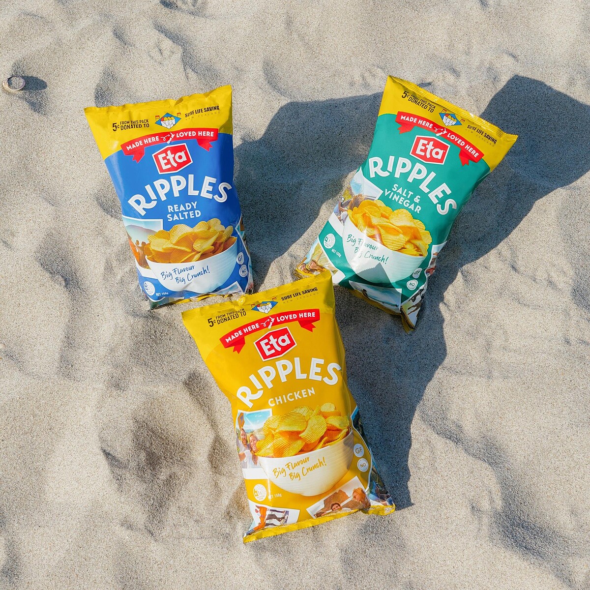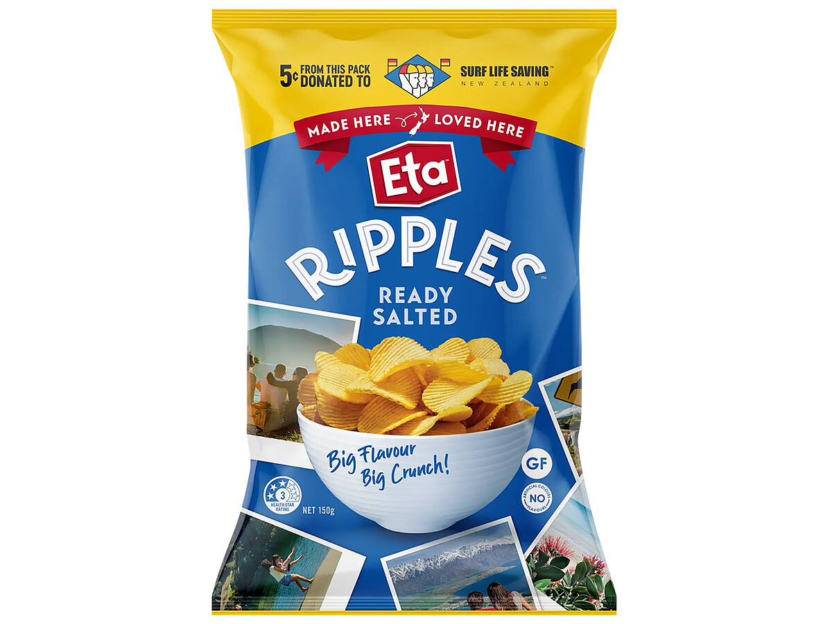 來自紐西蘭的百年國民品牌 ETA正式將旗下招牌厚切洋芋片「Ripple」系列引進台灣,並於7-11獨家開賣。首波主打三款人氣口味,每包150g只要99元。ETA Ripple最大特色在於採用獨家波浪厚切工法,厚度約為一般洋芋片的1.5倍,一口咬下層次分明,酥脆紮實。原料來源堅持選用紐西蘭契作農場的馬鈴薯,搭配無添加純淨製程,從低溫烘乾、脫油到調味與充氮保鮮,全面體現品牌對高品質零食的講究與誠意。
