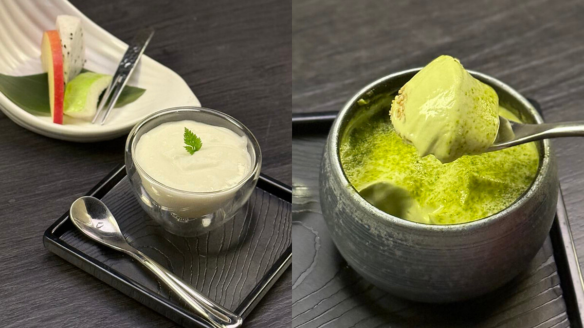 從前菜到主餐都毫不馬虎,《大啼SHABU-SHABU》的甜點部分也同樣細緻講究,特別設計兩款「蘆薈優格」或「抹茶提拉米蘇」選擇,其中「蘆薈優格」吃起來滑順酸香,清透無負擔,而「抹茶提拉米蘇」的柔滑慕斯,帶著微苦茶香與奶香,溫柔收尾延續餐點的美好。
