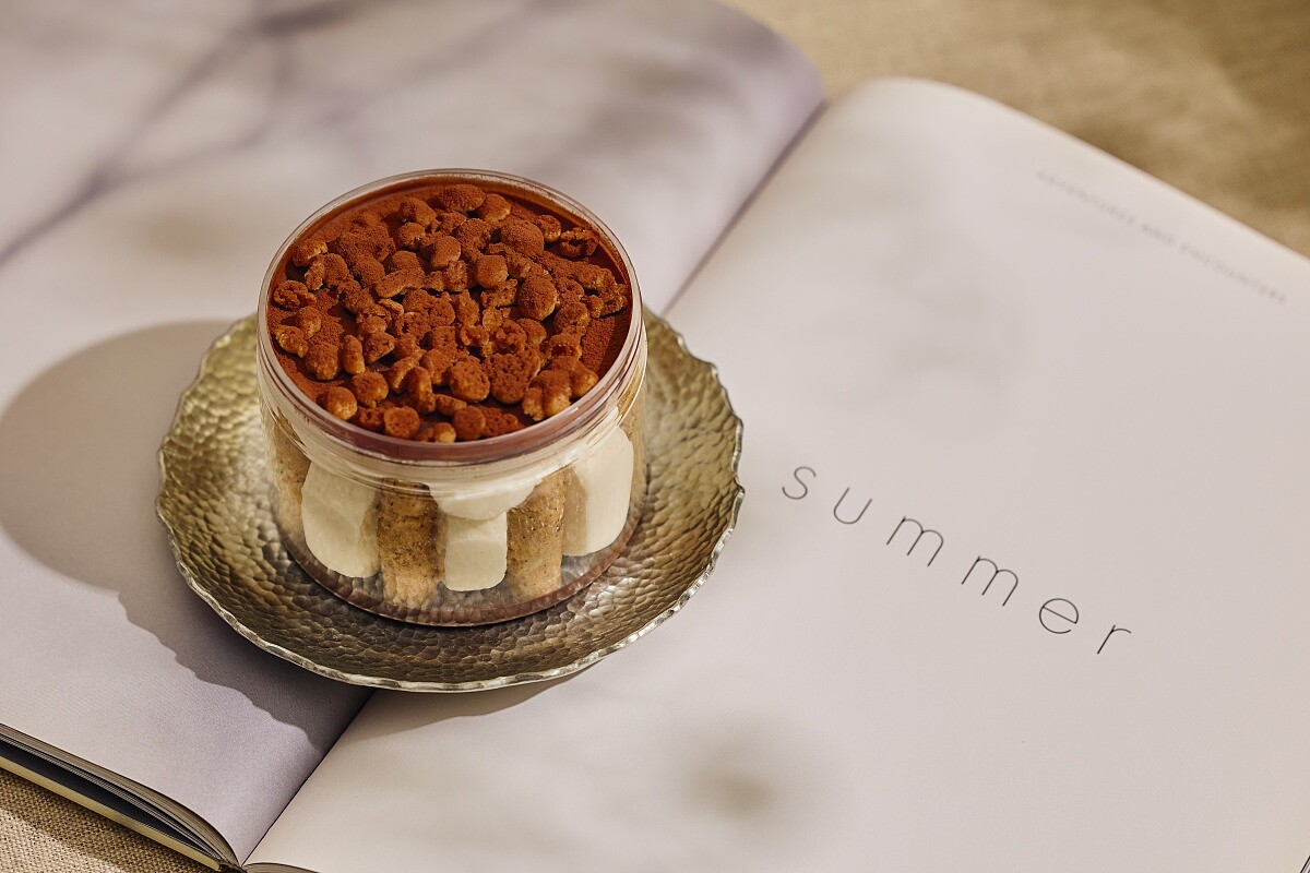 將提拉米蘇慕斯與松露甘納許層層堆疊,佐以苦甜風味可可搭配酥菠蘿,咖啡凍與布蕾口感柔滑如霧,恰與茶湯的澄澈氣息相得益彰。