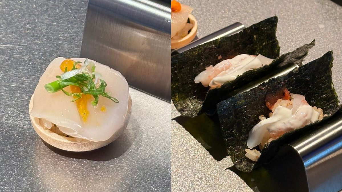 本區推薦菜色:海膽干貝最中、干貝甜蝦手捲佐柚子優格