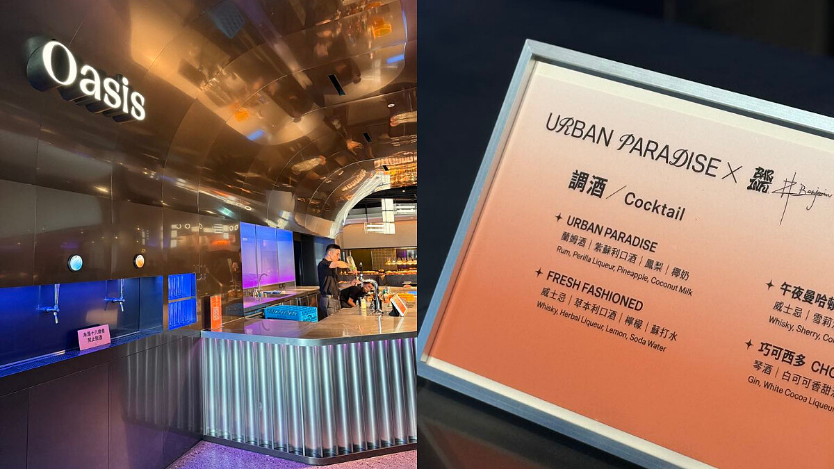 在「URBAN PARADISE」也能享受微醺,在「Oasis」區,提供以品牌為名的主題調酒,靈感取自花草果香與輕柔雲朵:鳳梨、柳橙、紫蘇交織出明亮層次,覆上椰奶泡沫,彷彿一場南洋微醺的輕旅行。另外攜手「GBA 精釀啤酒」合作,提供3款風味迥異、適餐性極高的精釀啤酒,其中「OASIS」為 GBA 為品牌量身打造的獨家限定酒款,帶有宜人麥芽甜香、苦味輕盈,極易入口。