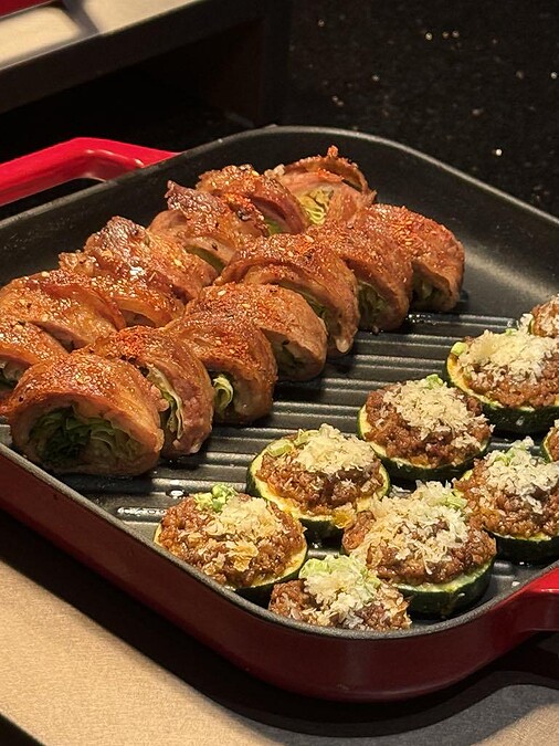 本區推薦菜色:牛五花捲蘿蔓、櫛瓜鑲肉佐蒜苗起司