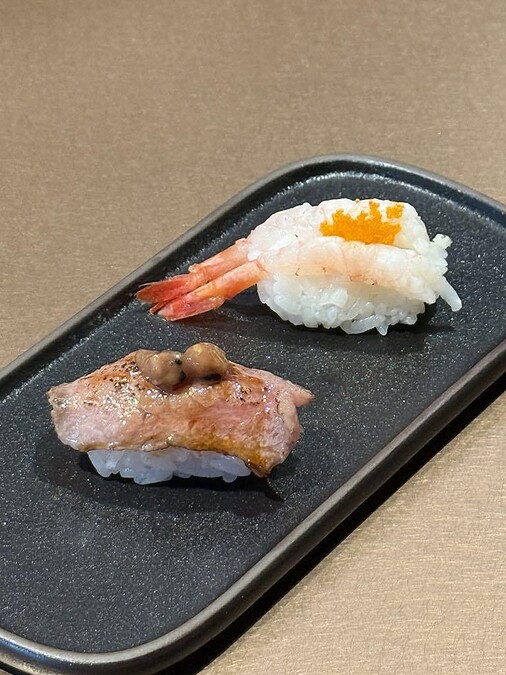 炙燒和牛脆菓握壽司、炙燒甜蝦握壽司