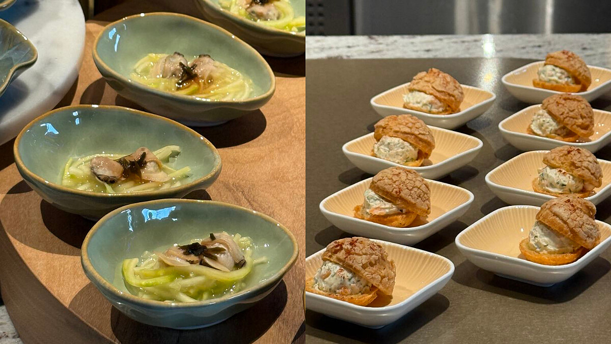 本區推薦菜色:鹽昆布蛤蠣櫛瓜麵、煙燻鮭魚奶油泡芙