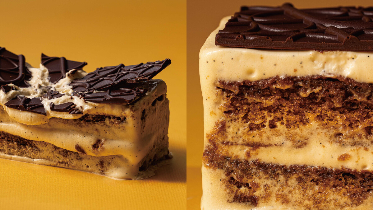 承繼以印花黑巧克力片取代傳統可可粉,不僅避免運送與食用時的沾染問題,也展現更具雕塑感的視覺美感。絲綢光澤的奶醬與俐落造型,讓人光看就能想像入口即化的質地。包裝採用厚磅紙材與雙層食品膜防護,專屬壓克力切片板則精準對應甜點尺寸,無論獨享或分享都能輕鬆分切,將品嚐的儀式感完整呈現,售價720元,首波限量於品牌概念店與官網同步開賣。