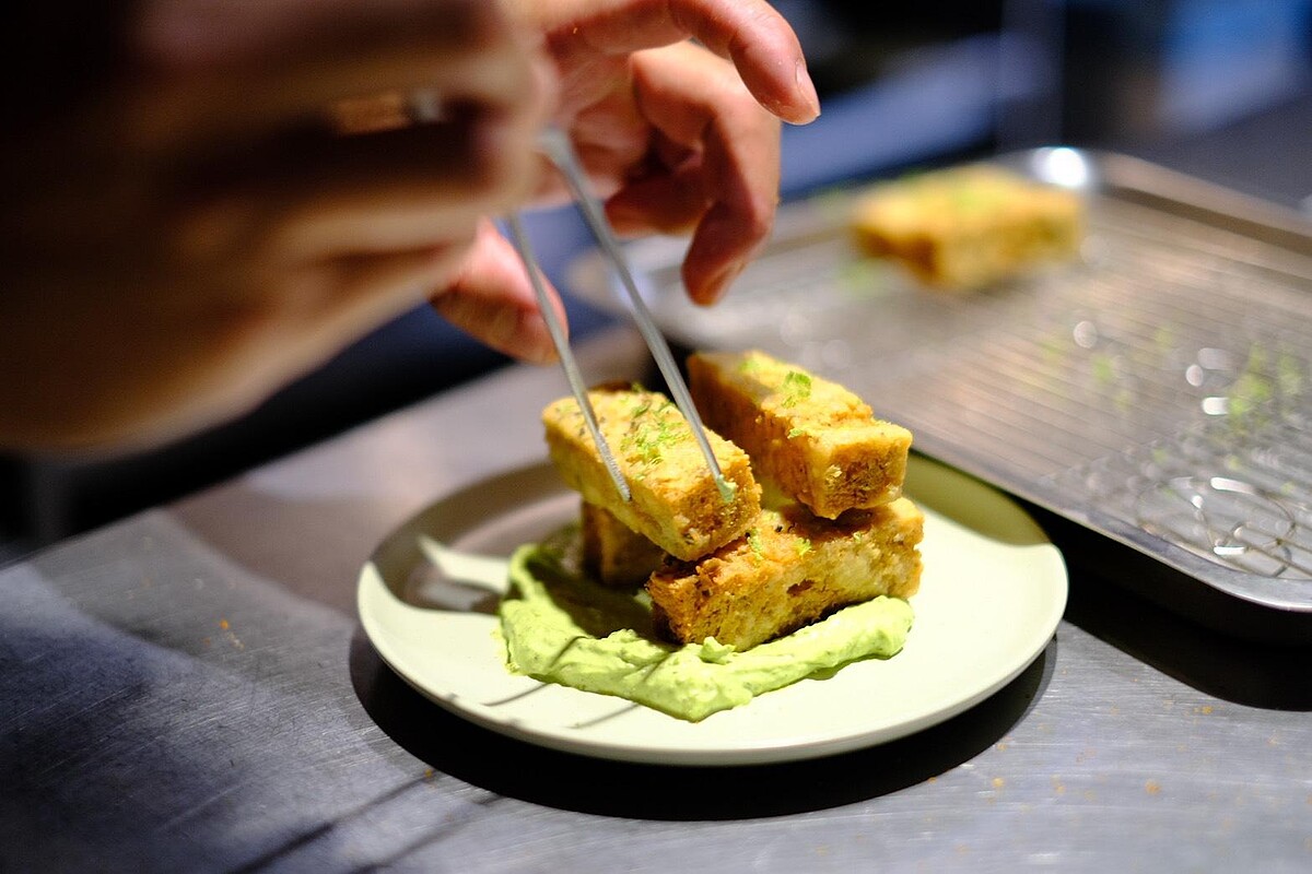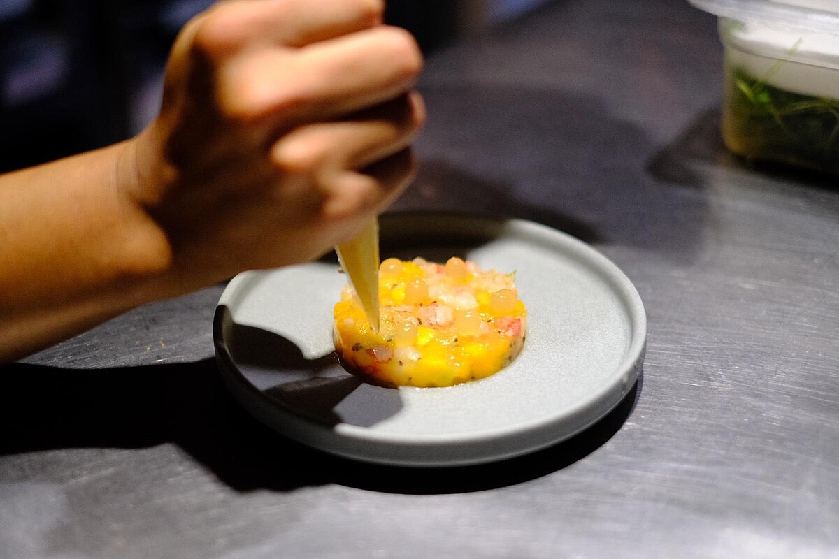 2位主廚背景迥異卻在理念上高度契合,Craig出身總鋪師世家,曾於米其林餐廳RAW磨練,將台灣的辦桌精神與法式技法交織成細膩又有情感記憶的料理語言;Tank則在澳洲開啟餐飲之路,受當地自由多元的料理文化啟發,回台後於RAW與Restaurant A累積經驗形成獨有的風味美學。Craig擅於提出概念,Tank則將其轉化為具體的味覺節奏與香氣設計,從湯底到主菜結構都由他把關,是SOMMÉ的風味中樞。
