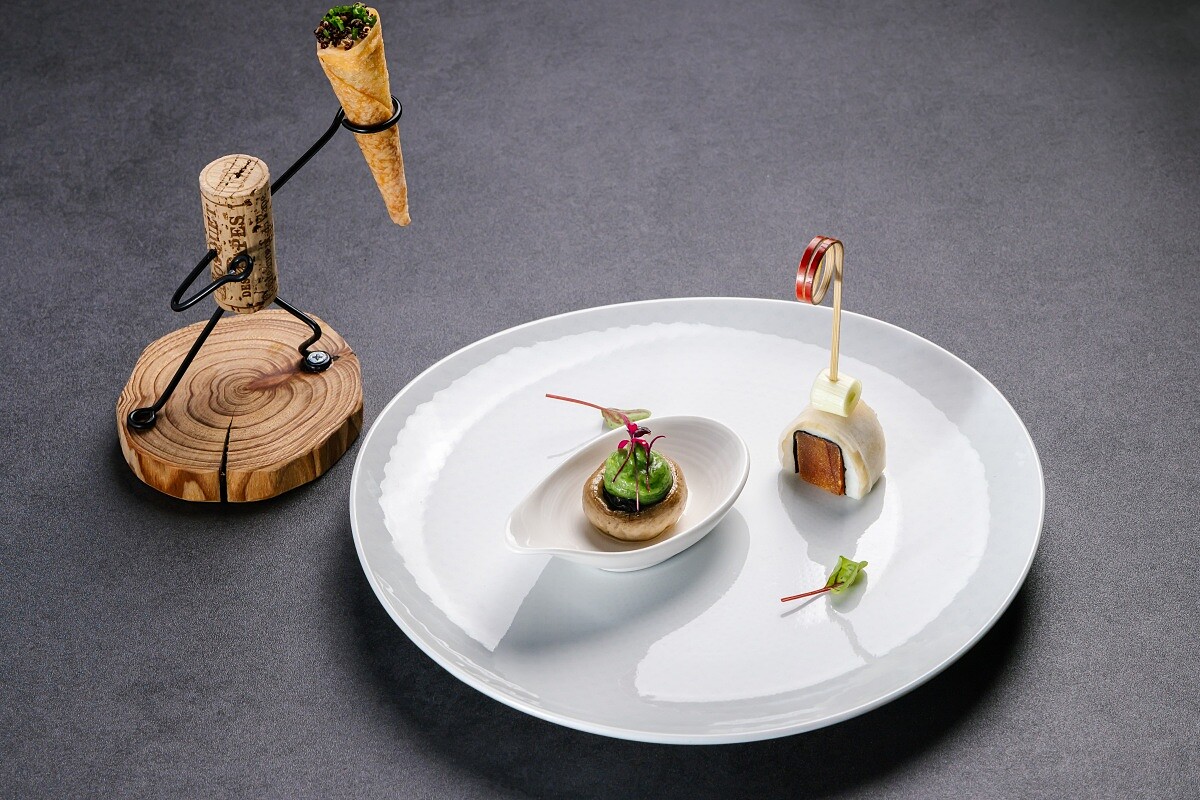 雙方團隊自年初開始研議,從食材選擇到菜序安排,都力求在西餐的骨架中呈現台菜的待客精神與寓意。最終以「2、4、4、2」的順序呈現十二道料理,包括了兩道迎賓小點、四道開胃菜、四道主菜(含前菜、湯品、紅肉與米食)、最後兩道甜點。數字背後,藏著「成雙成對」、「四季平安」、「圓滿吉祥」的意涵。