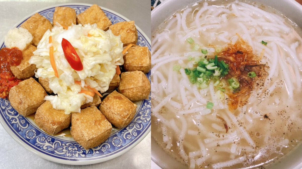 捷運南勢角附近的「珊珊臭豆腐」是中和在地經營超過二十年的老店,從興南夜市搬到景新街後,每天依然吸引不少老饕上門。這裡的臭豆腐炸得金黃外酥內嫩,剛剛好的大小正好入口。必點的米粉湯加了油蔥、芹菜末和胡椒提味,濃郁清甜又順口。店家每天堅持換油,兼顧衛生與食安之外還準備兩種不同辣度的辣椒方便顧客自己調整,入夜後點上一份簡單的臭豆腐配米粉湯,就是最經典的中和味宵夜。