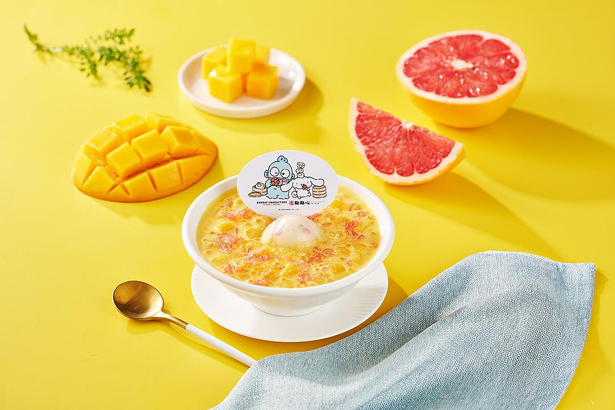 芒果、西谷米與葡萄柚果粒融合經典楊枝甘露風味,大耳狗奶皇湯圓清爽收尾,內用限定。