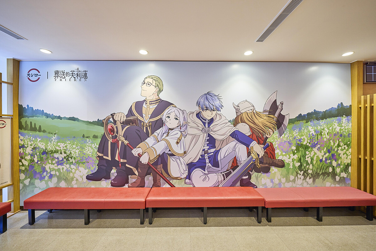 全台6間門市換上《葬送的芙莉蓮》主題裝潢,牆面、場景細節處處充滿冒險氣息。台北中華路店更特別設置「寶箱怪拍照區」,粉絲可以重現劇中經典場景,拍下屬於自己的冒險回憶。
