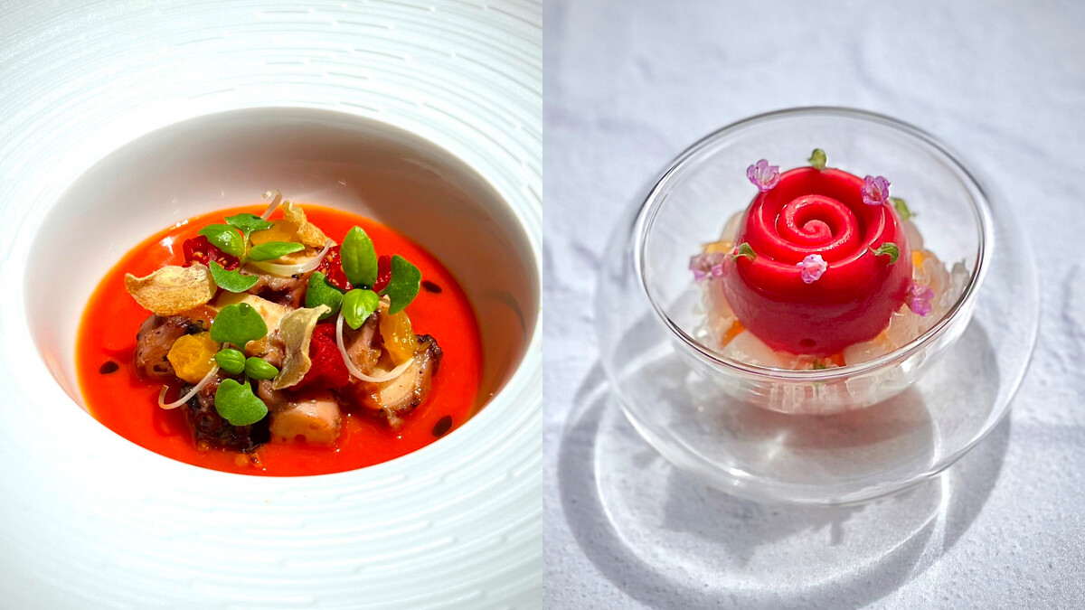 盛夏奔光:章魚與台灣樹子燴煮,搭配番茄、臘腸與茵陳蒿油,展現熱烈色彩。