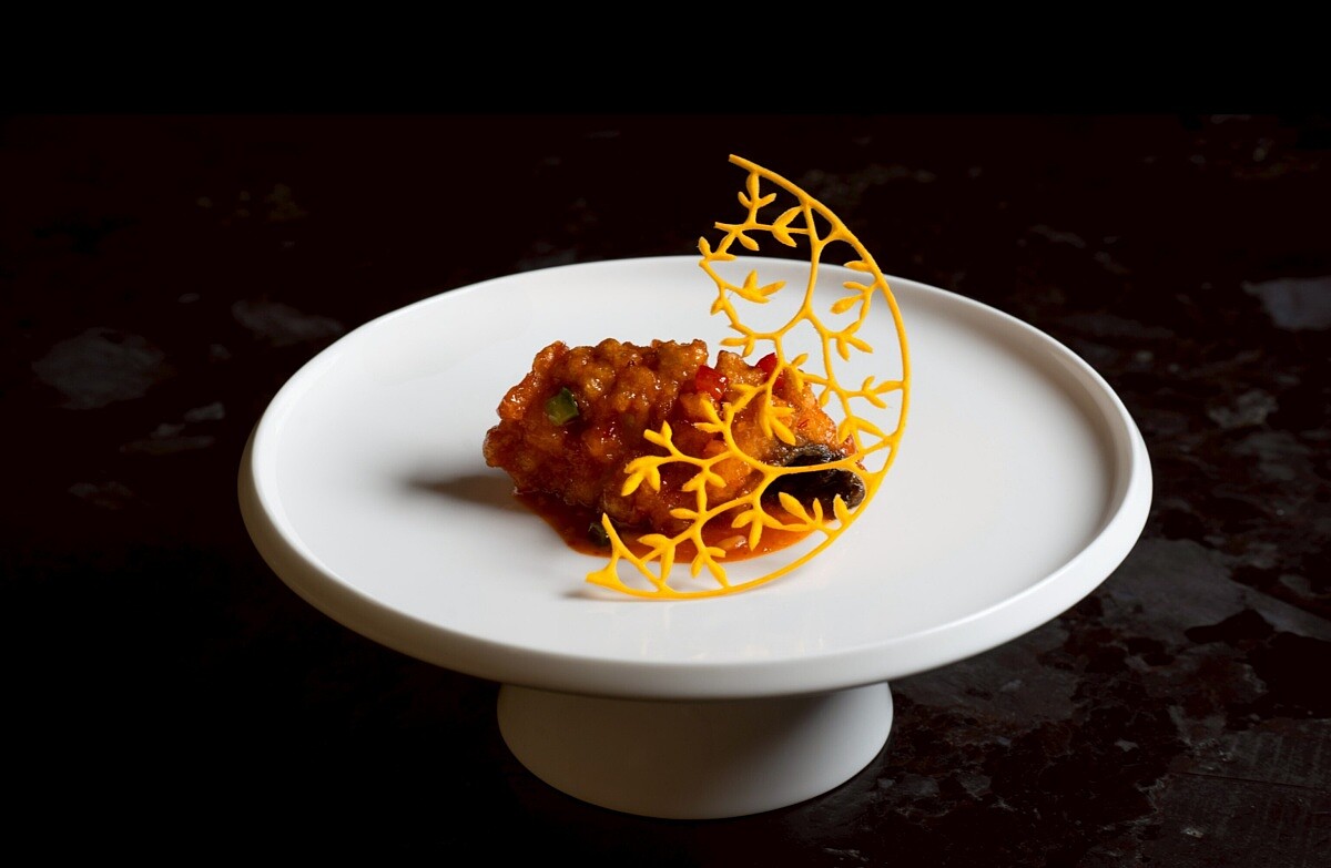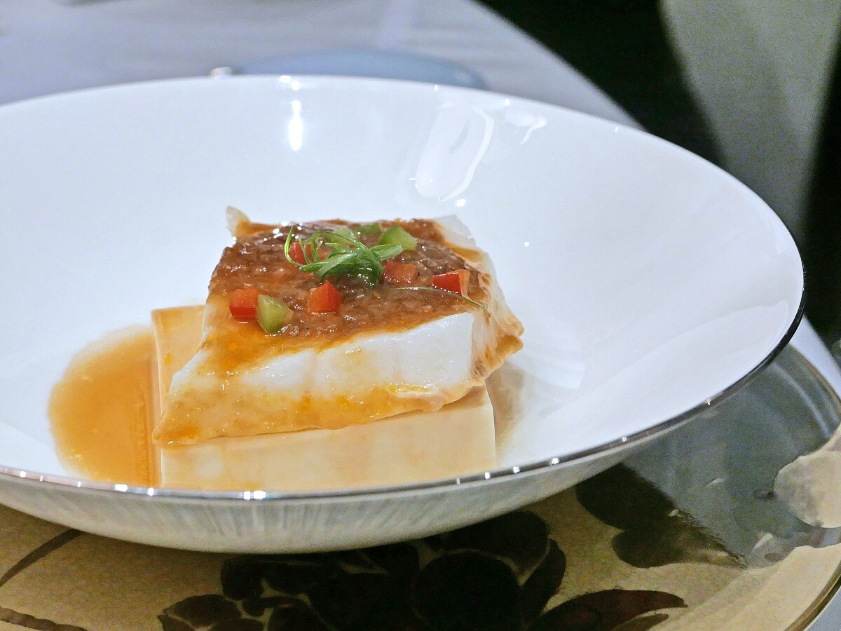 這是葉師傅旅居新加坡時汲取靈感的產物,氣候關係,當地人喜濃厚的風味。他將南洋醬料的辛香與粵式蒸魚的細膩火候結合,讓人嚐到熟悉又新鮮的滋味。選用肉質細嫩的南極鱈魚,以清蒸保留鮮甜,再覆上辣椒與香料調製的醬汁,入口既有魚肉的柔滑純淨,也有層層疊疊的辛香刺激。這不僅有粵菜的精準技法,又吸收異地風土的熱烈風味,也道出粵菜在海外發展時的靈活與包容。