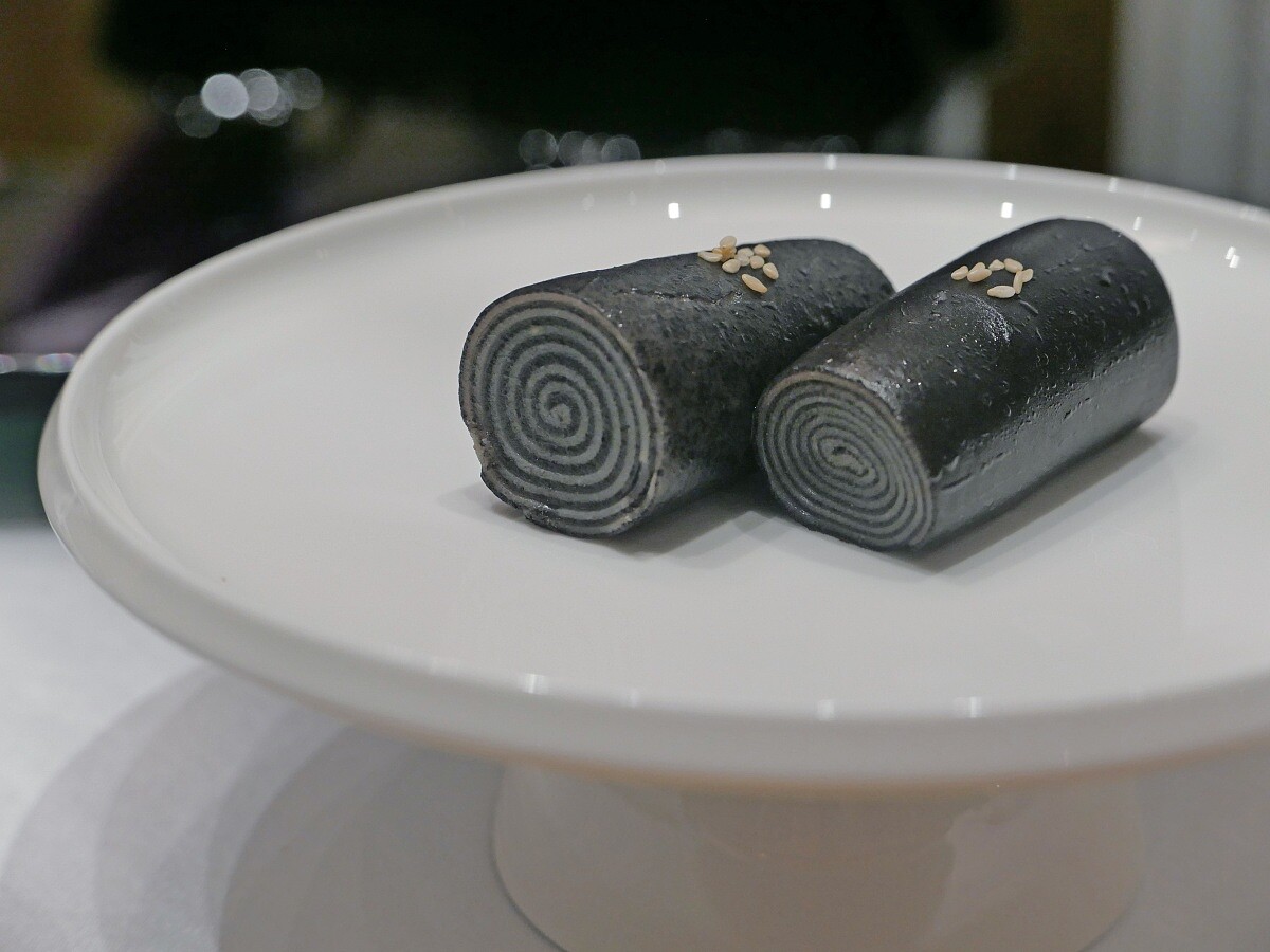 在香港茶樓,芝麻捲其實是很尋常的事情,特別在於得採全手工製作。多數店家以半成品蒸熱即上桌,葉師傅卻從源頭做起,要先將黑芝麻以小火炒香、細磨成粉,與冰糖、馬蹄粉調成漿入盤蒸透,微涼時脫模捲成薄筒。入口細滑,芝麻香純而不膩。對他而言,費工不是炫技,唯有手作才能留住食材的天然香與彈性。這道看似樸素的甜點,既是餐後收束,也是把「做工見真章」的老派精神留在口中的方式。