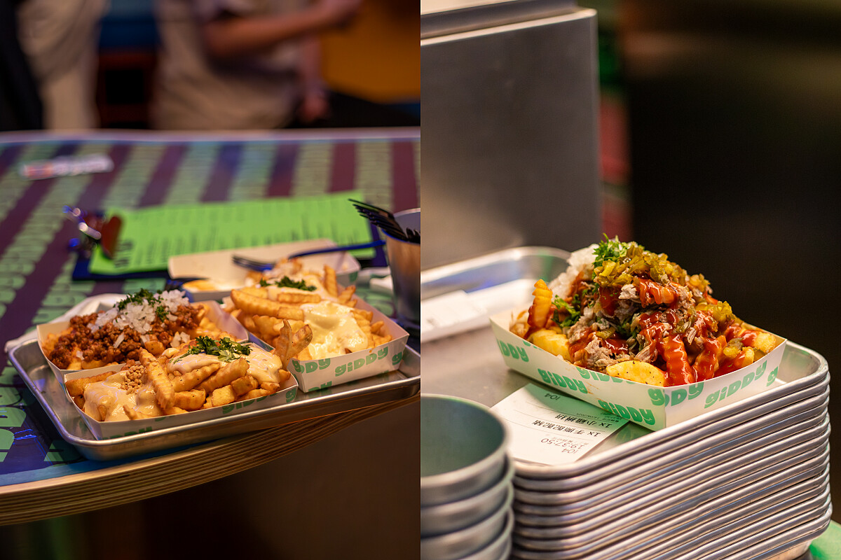 另一亮點則是搭酒小食,「GIDDY」將總是配角的薯條成為主角,搭配上各式各樣的沾醬來場化學變化,像是「我懶得想」系列主打波浪薯條加上四款預設組合,從蒔蘿塔塔炸蝦的清新、雞米花與雙醬的濃郁、到起司肉醬的鹹香或手撕豬肩的煙燻辣勁。而「就薯要醬選」系列則有多達11款自製沾醬,其中包括以臺南人氣火鍋「小豪洲」的沙茶醬展現在地風味、XO醬則與豆腐乳美乃等等令人驚艷的組合。