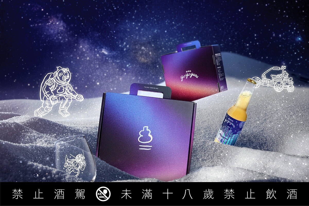 風味上,「柚柚柚果香艾爾」啤酒,以清新的日本白柚為主調,融合了酸甜萊姆氣息,入口氣泡細緻、果香飽滿。氣泡如同銀河中灑落的星塵,在舌尖綻放,再轉為溫潤柔和的甜感,節奏輕盈卻不輕浮,讓人在歡聚之夜喝得剛剛好。包裝瓶身也採用了紙衣設計,有如替太空探險家穿上太空衣,增添節慶感與開瓶的樂趣。