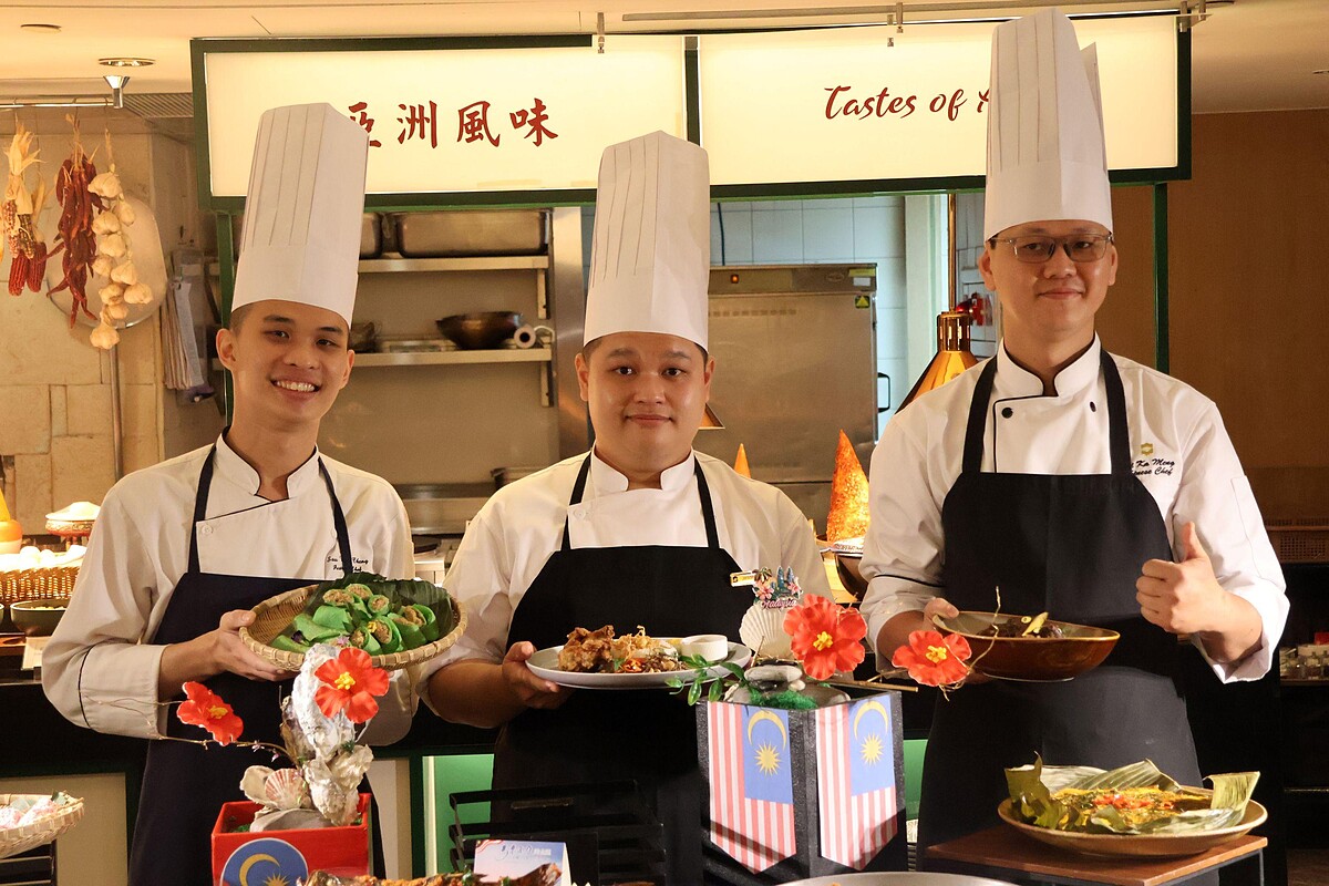 遠東Cafe這次邀請的陣容堪稱黃金組合,來自檳城沙洋香格里拉的主廚黃家明 (Ooi Ka Meng)曾為馬來西亞國王掌廚,他以「融合」為料理靈魂,將鮮脆蔬果、酥炸配料與獨門醬汁交織,完整展現檳城文化的多元共存。同樣來自沙洋香格里拉香料咖啡廳 (Spice Market Cafe) 的主廚張競 (Jason Teoh),則把「市井風味」搬上台北餐桌,他的招牌「檳城蝦麵」以蝦殼、蝦頭與豬骨慢火熬煮湯頭,重現街頭的熱情奔放。甜點部分則由檳城金沙香格里拉的蘇偉誠 (Saw Wei Cheng) 主廚操刀,他認為甜點是一種記憶的延伸,帶來的「玫瑰西米露糕」將娘惹糕點的傳統記憶幻化成粉色浪漫,以花香與椰絲交織出細膩的甜美時光。