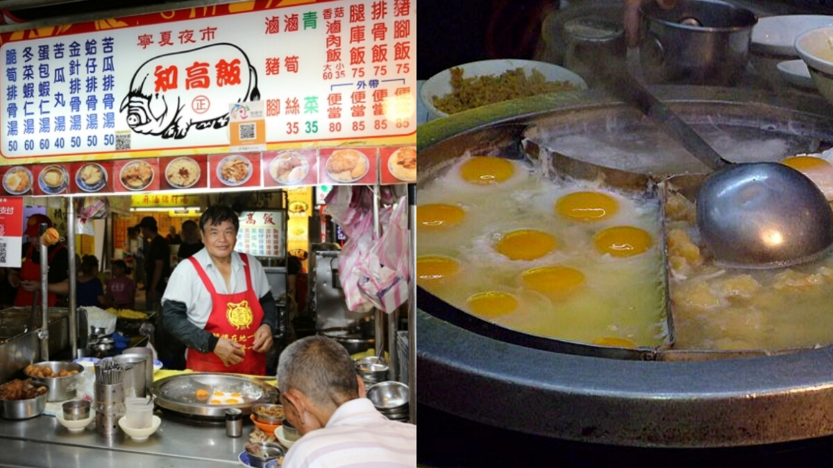 「知高飯」其實就是滷蹄膀飯,而寧夏夜市這家已經營近60年,選用當天現宰黑毛豬腿庫滷製,皮厚肉嫩、肥瘦分明。招牌腿庫份量十足,搭配筍絲、滷蛋,簡單卻能吃到店家的用心耗時。蝦仁蛋包湯更一大亮點,魚漿包裹蝦仁非常鮮美,搭配半熟蛋黃入口香濃滑順,最經典的吃法是將蛋黃伴著飯一起吃,層次豐富太銷魂。