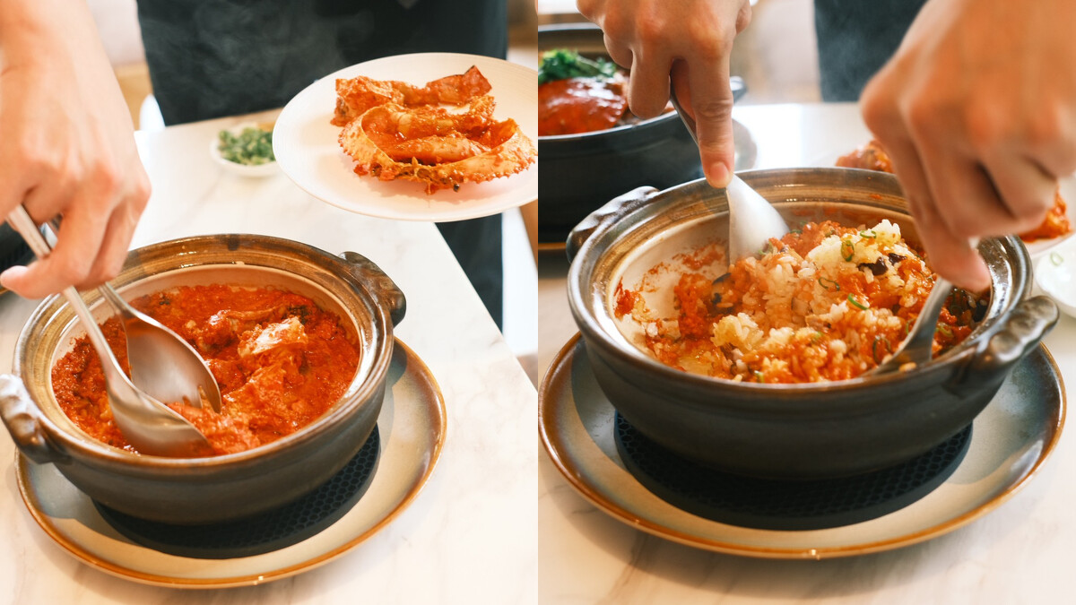 除了新餐色之外,玖尹也重現多道人氣經典,像是酒香濃郁的「江南陳年花雕醉蟹」、湯底厚實的「紅蟳玉米雞湯煲」、鮮香誘人的「鮮蛤雪菜燒沙公」,每一道都是饕客心中的秋味記憶。壓軸的「禿油蟹黃紅蟳撈飯」以台梗16號米入鍋,煮出焦香鍋巴讓人忍不住食指大動,再拌入蟹黃熬成的禿黃油與花菇、五花肉,蟹香與米香交融,絕對是最奢華的收尾。