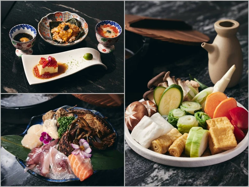 不只是主菜,橋山對配菜、前菜與甜點也同樣講究。前菜選擇多元,從和風蟹肉鮭魚卵豆腐、松露山藥海膽佐小豆島醬油,到現流螢光烏賊佐味噌醬,每一道都選用嚴選日式食材,蛋豆腐更是自製,綿滑細緻。蔬菜也經過貼心處理:地瓜、南瓜、白菜等先汆燙過,既保留甜味,也避免煮過久或過鹹,口感剛好。