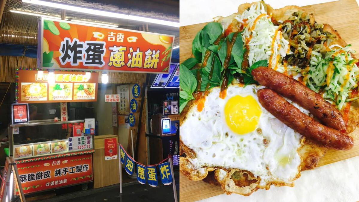 「吉香炸彈蔥油餅」也是東大門夜市的排隊名攤,讓客人享受視覺與味覺的炸彈級享受。手工麵糰每日限量,現點現炸,金黃餅皮酥就像蘇打餅乾,刷上令人上癮的鹹甜醬,咬下瞬間蛋黃爆漿流出,濃郁的蛋香與餅皮麵香相互交融,卻一點都不油膩。共有經典原味蔥油餅、清爽蔬菜蔥油餅和豪邁總匯3種口味,每位饕客的味蕾都能滿足。