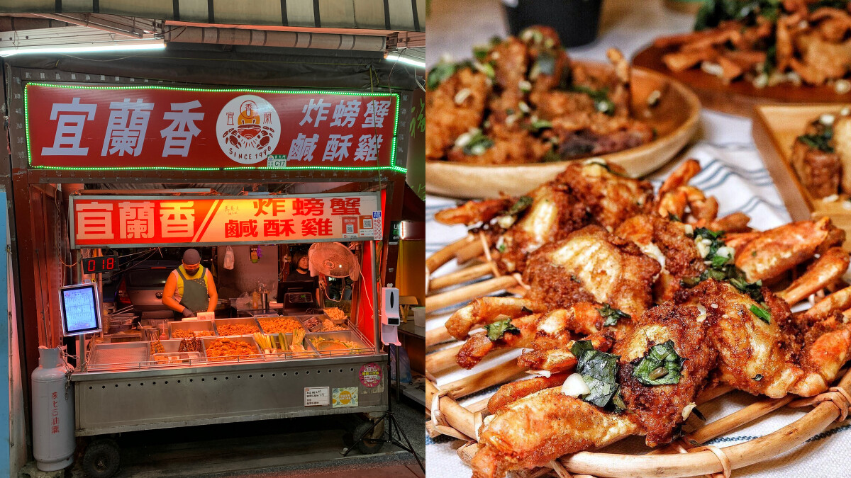 「宜蘭香炸螃蟹」是秤重計價的豪邁海味,整隻新鮮螃蟹和重口味調味是一開店就排隊的關鍵。油炸後的螃蟹外酥內軟,肉量多且鮮美,加上大量新鮮九層塔、蒜頭、蔥,鹹香調味適合直接帶殼吃,再慢慢吐出外殼。除了螃蟹,這家的雞排也是必點品項,外皮酥脆但內裡依然軟嫩多汁,推薦有吃辣的話一定要加上酸辣沾醬。