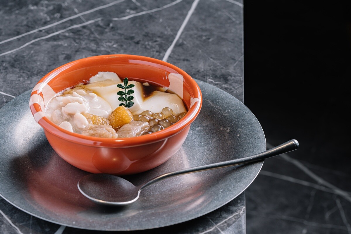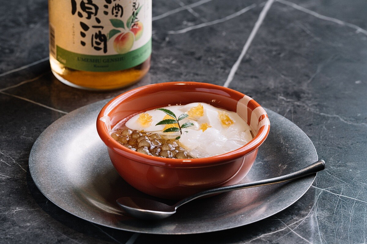 以居酒屋受歡迎的梅酒調飲為靈感,在豆花湯底加入梅酒創造出酸甜的梅果香氣,並大膽地加入「台灣在地梅子味噌」增添風味厚實度與樂趣。點綴入饌的糖漬柳橙丁、檸檬馬鞭草,也賦予味蕾豐富的層次變化。(東區微醺豆花店限定)