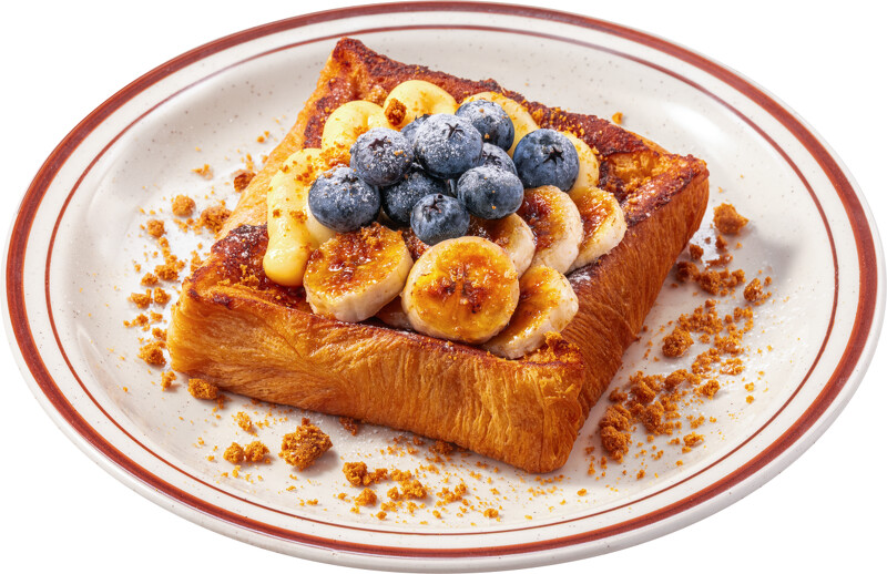 鬆軟綿密的法式吐司,抹上特製噶瑪蘭威士忌卡士達,點綴炙燒焦糖香蕉片與新鮮藍莓粒,果香與酒香碰撞,每一口都充滿驚喜。