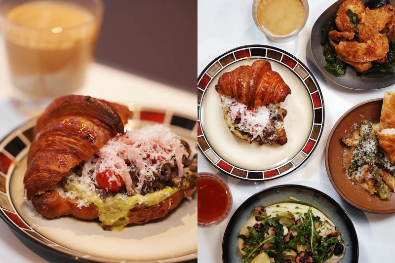 秋季新菜單同樣為前菜與輕食注入巧思,「腰果泥蘆筍」($390) 以堅果香氣結合焦化奶油油醋,清甜烤蘆筍佐刨帕達諾起司與辣粉,開啟味蕾的暖序章;「玻璃雞翅」($330) 魚露、椰糖醃製24小時,外皮薄脆如玻璃、肉汁飽滿;「炭烤八爪」($520) 慢燉章魚再經炭火炙燒,配綠葡萄與腰果泥,鹹鮮之中透著果香酸甜。此外還推出3款麵包輕食「布里起司三明治」($380)以烤葡萄與索蘭諾火腿堆疊濃郁層次;「番茄芝麻葉三明治」($330)以番茄味噌醬與絲綢起司展現清爽風味;「牛肉可頌堡」($420)則以和牛漢堡排、酪梨醬與帕達諾起司交織出飽滿油脂與果香平衡。