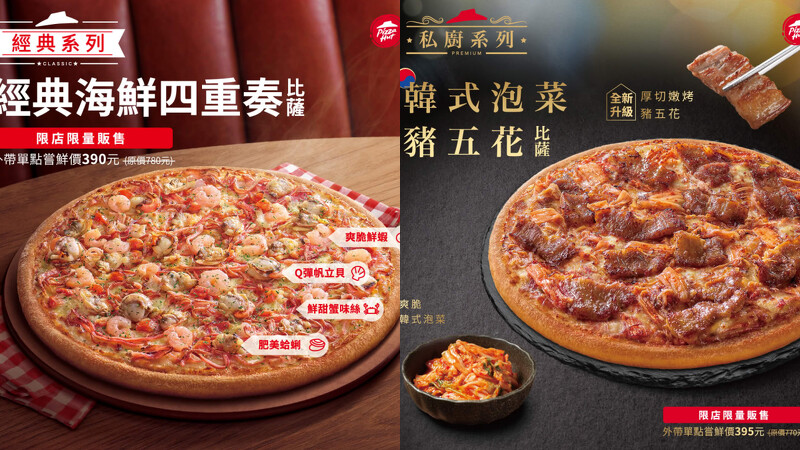 兩款新品即日起至11/24於全台50間門市限時販售,外帶單點嘗鮮價分別為395元與390元,並同步推出個人與大比薩多種尺寸選擇。