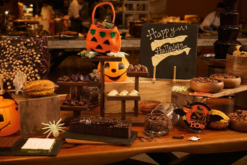從10/31至11/2,松山意舍酒店17樓「Que原木燒烤餐廳」推出搞怪萬聖節晚餐半自助式吃到飽。主餐搭配豐富自助吧,包括現蒸萬里蟹、松葉蟹腳、現烤海鮮、熱菜與中式小菜,還有搞怪甜點與糖果專區,並提供啤酒與特調雞尾酒無限暢飲。成人每位980元起、兒童 680元起,穿萬聖節裝扮入場還可獲贈限量糖果盒燈籠一份。當晚每桌再贈總值6,000元意舍酷 FUN 現金抵用券,下次聚餐也能延續節慶好心情。