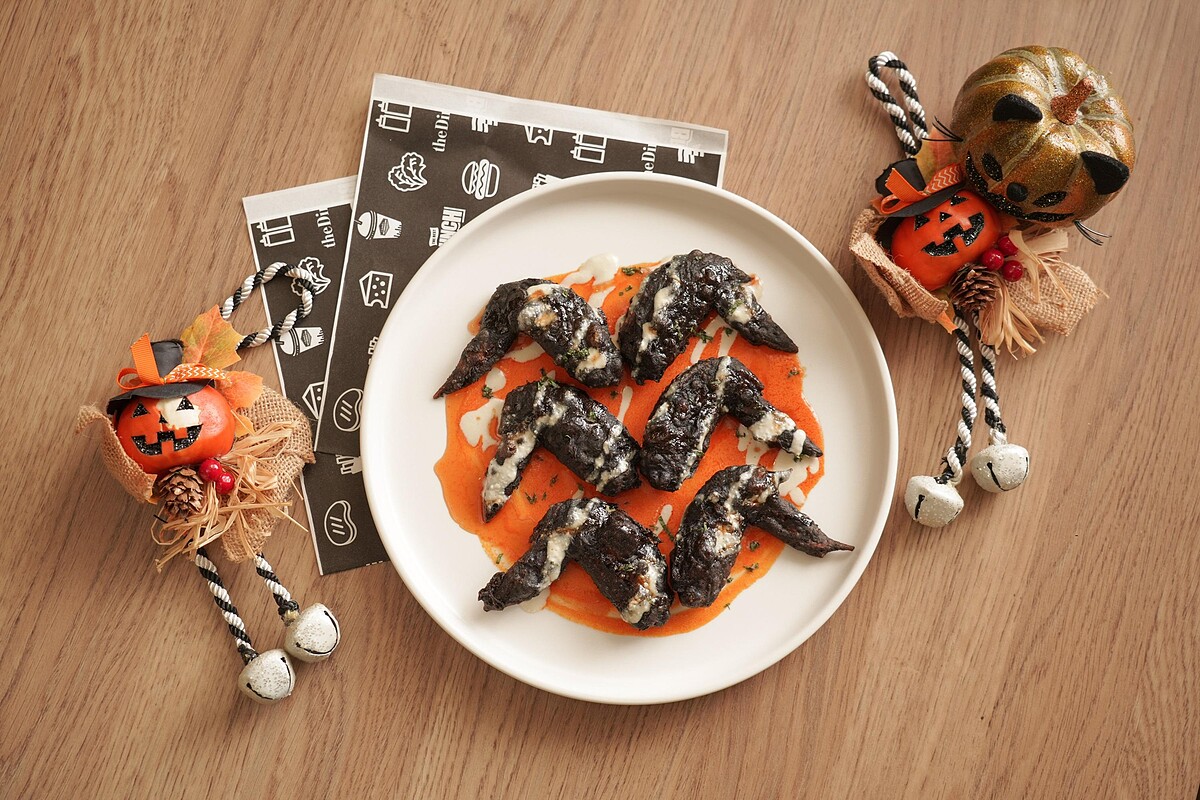 樂子 the Diner 今年萬聖節推出的「魔鬼蝙蝠辣翅」,以墨黑外衣包裹香辣雞翅,酥脆外皮下藏著滿滿辣勁,形狀宛如夜幕下展翅的蝙蝠。即日起至11/2凡點用即贈「萬聖節主題紋身貼紙」一張(數量有限),而在10/31至11/1兩天穿著變裝前來,更可免費獲得指定飲品一杯。此外只要參加官方Instagram或Facebook活動留言並於期間內完成訂位,就能再享「午夜幽靈Oreo奶昔」一杯。樂子用味覺營造節慶氛圍,邀大家一起開啟屬於夜貓族的暗黑派對。
