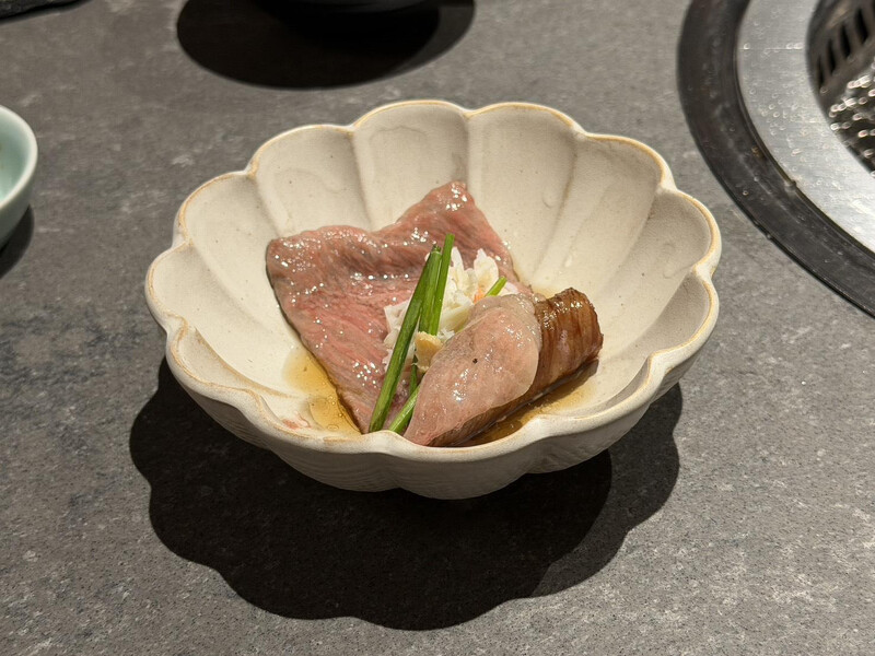上吉弐的燒肉節奏像在指揮一首交響曲,料理長把白老牛、高崎牛、黑樺牛、極黑牛4大品牌牛排列成味覺的漸層,從細膩到濃厚、從輕柔到深沉,每一口都像一段旋律。小編覺得最迷人的是那種從清香到濃香的流動感,不會膩、也不突兀,吃完之後只剩餘韻在口腔裡打轉,讓人想再來一輪。