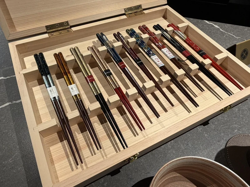 上吉弐對老客人相當重視,店家特別為用餐超過30次的10位「璀燦VIP」設計專屬菜單,像是「米菓生牛肉」結合生牛肉與北海道干貝,放在特製蔥香米餅上,一口咬下酥脆、柔滑、鹹香同時爆開,小編吃到這道菜的時候真的有種被寵愛的感覺~這些VIP還能獨享「璀燦御匠漆筷十入」餐具組,每支筷子都像藝術品,「吃飯也是一種儀式」的態度完全體現出上吉弐的精神。