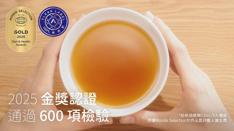 好的滴雞精不只營養,更要安心!桂格滴雞精榮獲 「Monde Selection 金獎認證」與「A.A. 100%無添加認證」,以最純淨的方式呈現自然雞湯香氣。並且從飼養到生產通過 600 項檢驗,確保每一滴都安心純淨,營養美味喝得到!這份看不見的用心,才是全家能每天放心飲用的真正理由!
