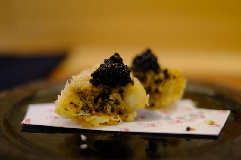來自日本宮崎縣高千穗町,以傳統鐵鍋慢火炒製,香氣帶焦糖韻。與握壽司和清湯搭配時,味蕾會自然沉靜下來,像是進入收尾的靜謐章節。
