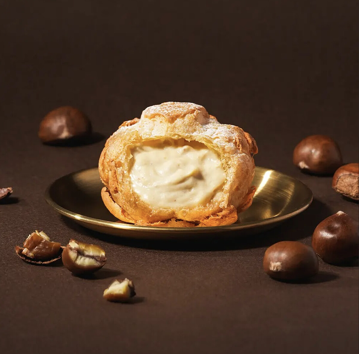 beard papa’s 今年秋冬與日本茨城縣笠間市攜手合作,推出 2025 年 11 月限定口味「栗子泡芙」(售價95元)。笠間市以盛產鬆軟飽滿的栗子聞名,有「栗子王國」之稱。這次 beard papa’s 精選當地直送栗子,搗碎後混合鮮奶油與卡士達醬,製成綿密細滑、香氣濃郁的絲絨栗子內餡。泡芙一口咬下,栗子的天然風味立刻在口中蔓延,甚至還能吃到些微栗子顆粒,口感豐富且綿密不黏膩。在微涼的秋冬時分,來一顆栗子泡芙再適合不過。