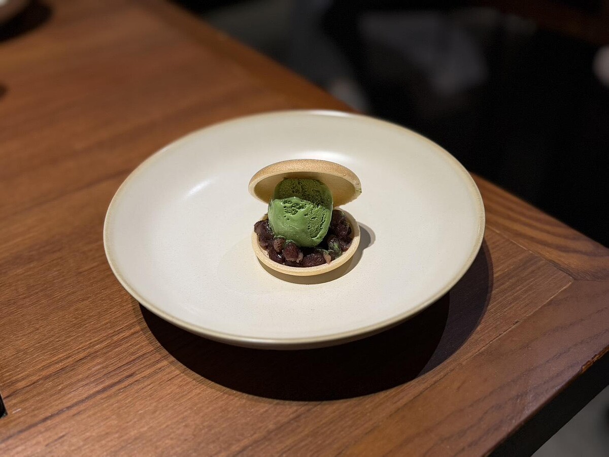 這裡的甜點是餐後體驗的一部分,每份套餐都包含自家製甜點三選一,抹茶最中餅、香草冰淇淋或巴斯克蛋糕,精緻又不膩。副餐另附北海道夢美人米或昭和白蓮烏龍麵(二擇一)與豐富季節野菜盤,從前菜到甜點都維持頂級水準。