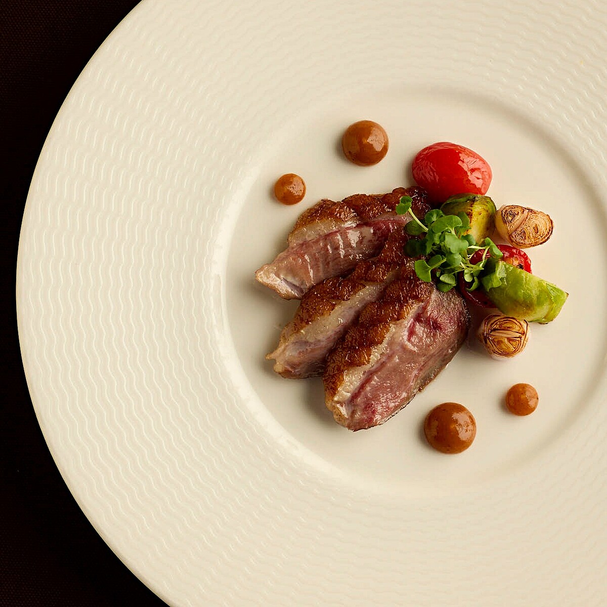 脆皮櫻桃鴨胸 孢子橄欖 南高梅紫蘇醬汁