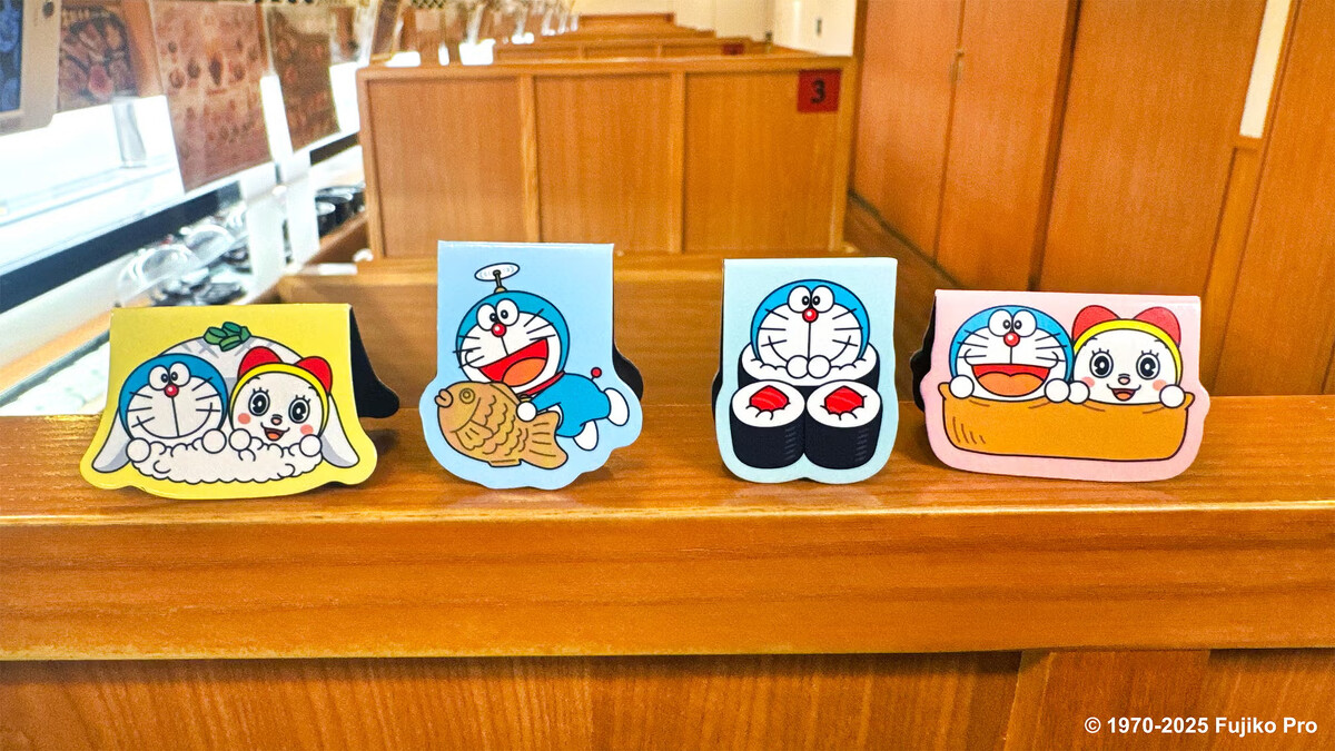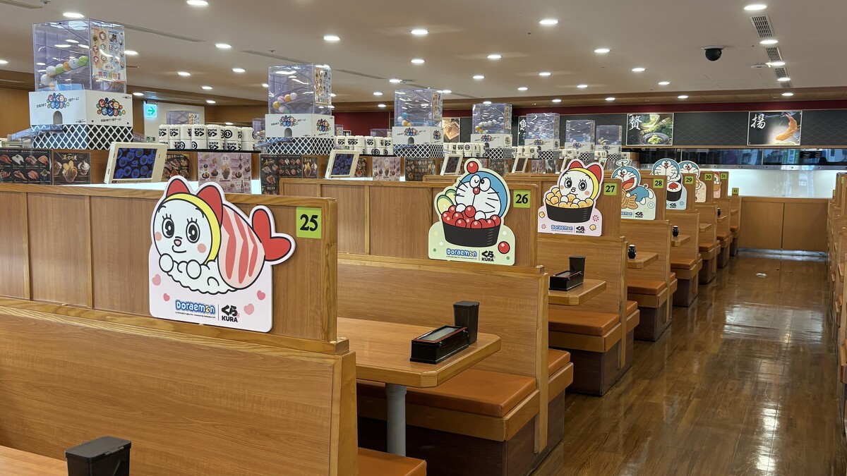 這次聯名活動提供扭蛋驚喜外,藏壽司更將5間指定門市徹底打造成「哆啦A夢回憶滿袋」的主題空間,包括板橋遠科店、基隆中正信三店、台北館前店、台中惠文路店及高雄岡山店,從門口到等候區、櫃檯都能看到哆啦A夢兄妹的蹤影,讓粉絲們彷彿走進動畫世界。