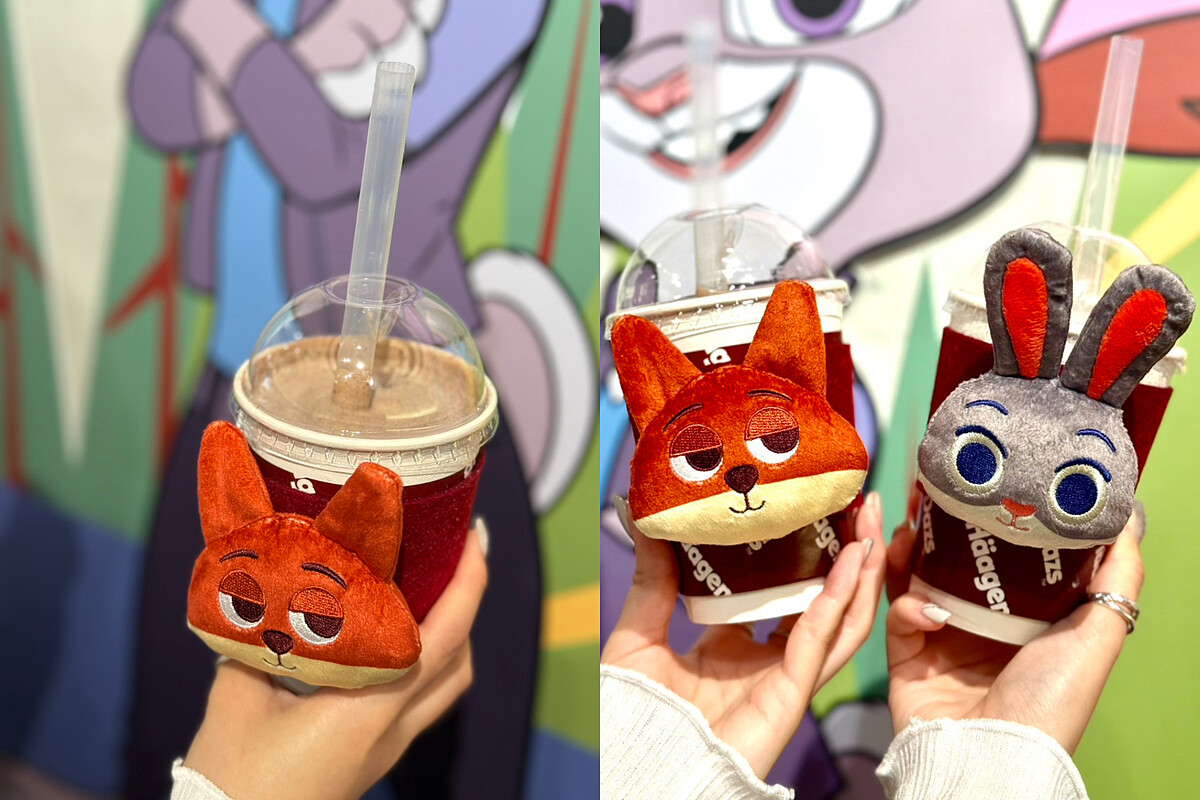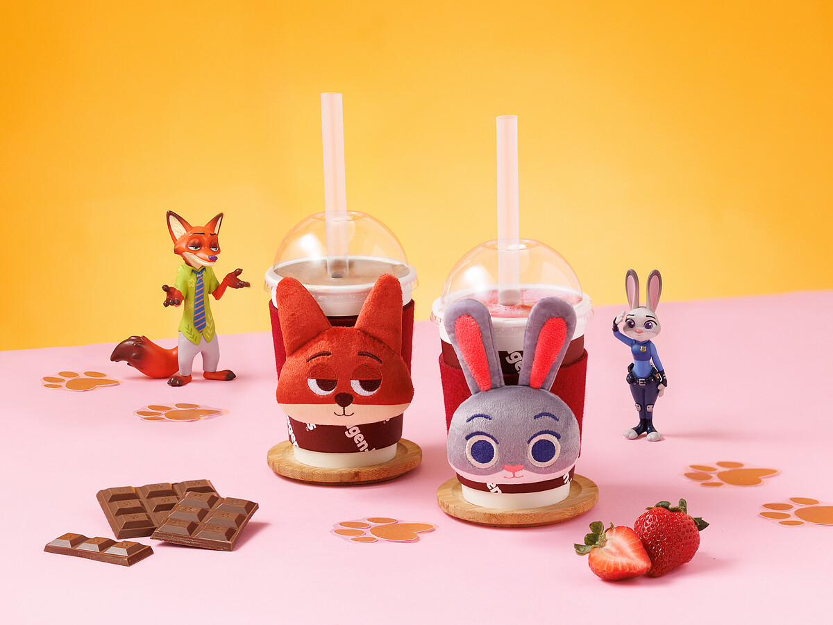 「尼克‧可可酥享奶昔」 以濃郁巧克力冰淇淋與可可塊餅乾交織而成,口感細膩滑順,完美呈現狐狸尼克機智又迷人的性格特質。「茱蒂‧莓好探險奶昔」 選用草莓冰淇淋與覆盆子雪酪,融合出酸甜果香。清新明亮的風味完美呼應了兔寶寶茱蒂熱情、勇敢的性格。凡購買任一款奶昔,即可獲得對應角色的限量毛絨杯套。杯套以主角尼克與茱蒂的大頭造型設計,觸感柔軟,即使手握冰涼奶昔也舒適溫暖。要注意的是聯名杯套數量有限,想收藏的粉絲千萬別錯過!
