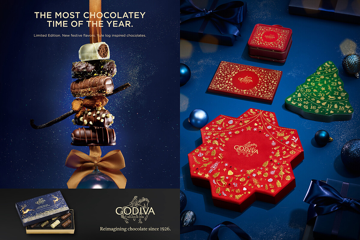 來自比利時的頂級巧克力品牌GODIVA,今年聖誕限定系列以藍金色系搭配麋鹿與節日城市剪影設計,象徵溫暖與祝福。其中最引人注目的是以歐洲經典聖誕樹幹蛋糕為靈感的Yule Log巧克力系列,包含樹幹蛋糕形杏仁牛奶巧克力、樹幹蛋糕形開心果黑巧克力、樹幹蛋糕形香草白巧克力等五款創新風味。除了經典禮盒,GODIVA更推出聖誕樹、小熊、薑餅人、鈴鐺等趣味造型禮盒,既是送禮佳品,也是節日裝飾亮點,即日起至12/25 GODIVA還推出折扣優惠是聖誕送禮的絕佳選擇。