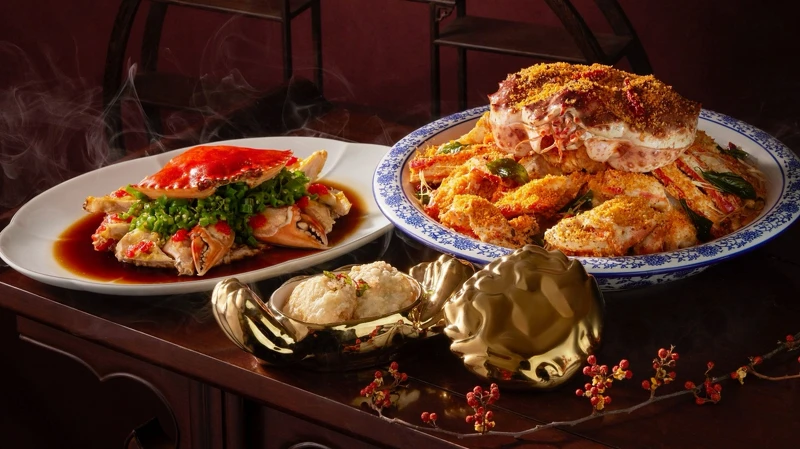因2024年與「中國川菜大師」許凡主廚掌杓的「許家菜」展開客座饗宴,請客樓主廚許宏德今年率領團隊前往成都研習川菜手法數個月時間,特別把秋季必吃的螃蟹料理結合川菜手藝,呈現出16道新潮秋蟹佳餚。集結鱈場蟹、沙公、沙母、處女蟳、松葉蟹等5大時令活蟹而成的「金蟹宴」,僅於12/31前推出。我們整理出8道必吃菜單,色香味俱全實在不容錯過!