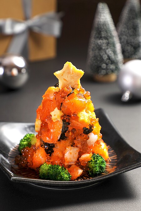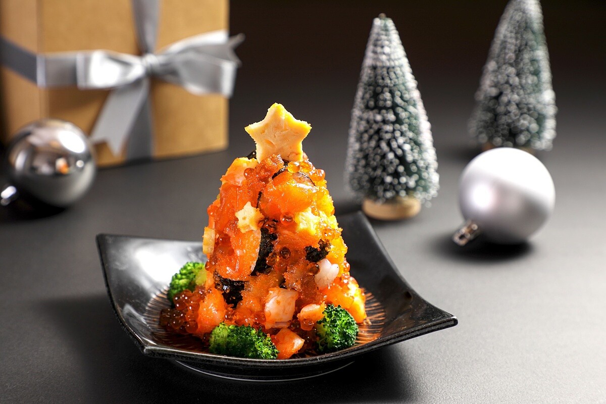 緊接著,為了迎接聖誕,12/22~12/25推出「合點聖誕壽司」,四人同行、消費滿一定金額,就能獲得一份以玉子燒點綴的「迷你壽司聖誕樹」。其內容是用鮪魚、鮭魚、甜蝦、鮭魚卵與飛魚卵被排列成繽紛層次,既可愛又具份量,很適合與同桌的親朋好友們分享,品牌把日本人過聖誕節時的那份溫馨轉成壽司的形式,讓客人在年末相聚時,多了一個獨特的節慶小儀式。