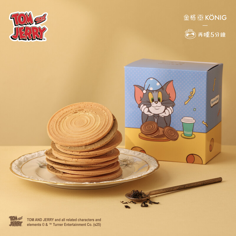 為了迎接年末,以及致敬《Tom and Jerry》85週年,再睡5分鐘攜手長崎蛋糕領導品牌金格KONIG,推出聯名派對分享三入禮盒。這是2個品牌首次合作,整盒內容從設計到風味都以派對共享為出發點。 整盒結合金格的烘焙工藝與再睡5分鐘的品牌靈魂,拿來送禮或派對共享都很合適。