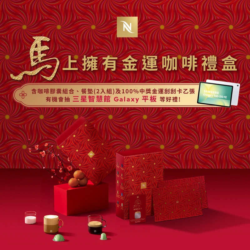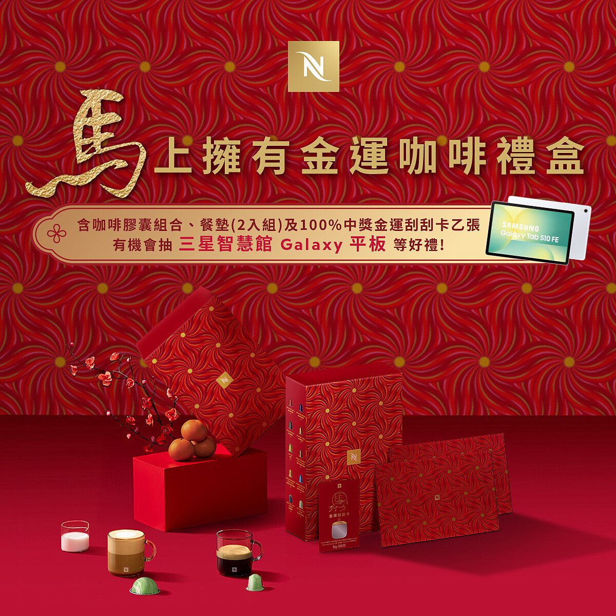 Nespresso以「一指探索 縱享啡凡」為年度核心將精品咖啡藝術轉化為充滿驚喜的新春獻禮。因應除舊佈新的居家美學需求,全系列咖啡機祭出限時優惠2,990元起。對於追求極簡優雅的初學者,經典款 Inissia以復古外型與僅2,990元的驚喜價入選首選名單;而對風味層次有極致追求的老饕,則不容錯過搭載 Centrifusion™離心力萃取技術的 Vertuo系列,其中 Vertuo POP魅惑紅更以3,990元的優惠價,成為點亮年節餐桌的視覺核心。無論是五星飯店指定的專業型Pixie或是能一鍵成就完美拿鐵比例的Lattissima One,甚至是支援專業拉花工藝的頂級旗艦 Creatista Plus皆在本次回饋之列,讓每一口醇香都能與居家的生活溫度完美契合,輕鬆升級新春招待質感。除了設備的感官升級,Nespresso更推出「福滿花開金運咖啡禮盒」,以「馬上刮出好運」的儀式感為年節走春增添樂趣。禮盒精選了台灣市場最具口碑的經典風味,包括濃郁厚實的義式經典拿坡里、阿佩奇歐,以及驚喜回歸、充滿法式浪漫氣息的「福里安花神咖啡館聯名款」與溫潤甜美的「開心果香草風味咖啡」,一次滿足多元的味蕾偏好。最令人期待的莫過於禮盒內含的 100%中獎率「金運刮刮卡」,包含價值破萬元的三星智慧館Galaxy平板、Galaxy Buds3 Pro耳機及經典品牌配件。