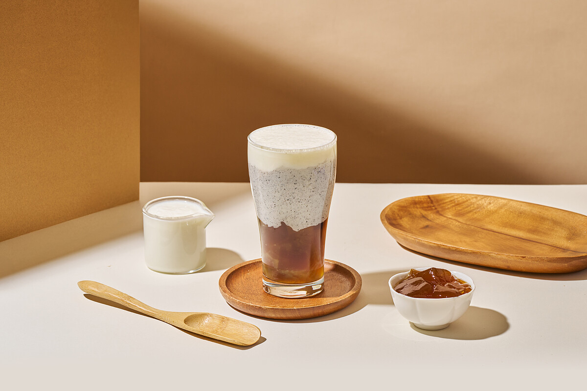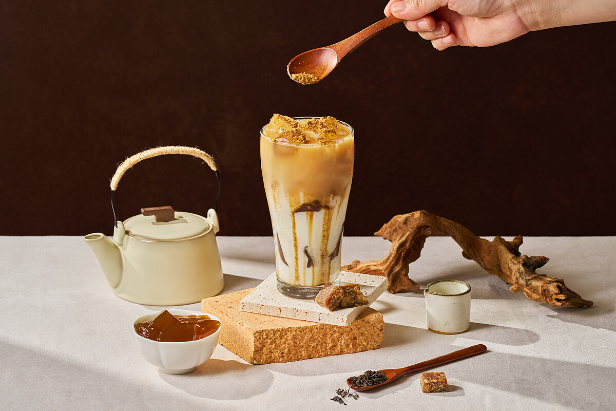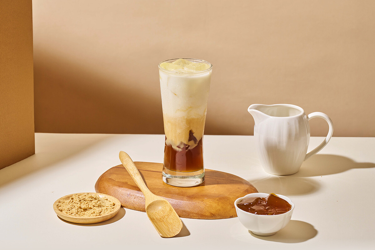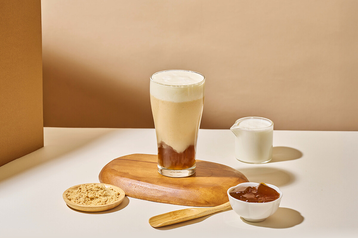 「能量黑糖粉粿焙金萱奶茶」