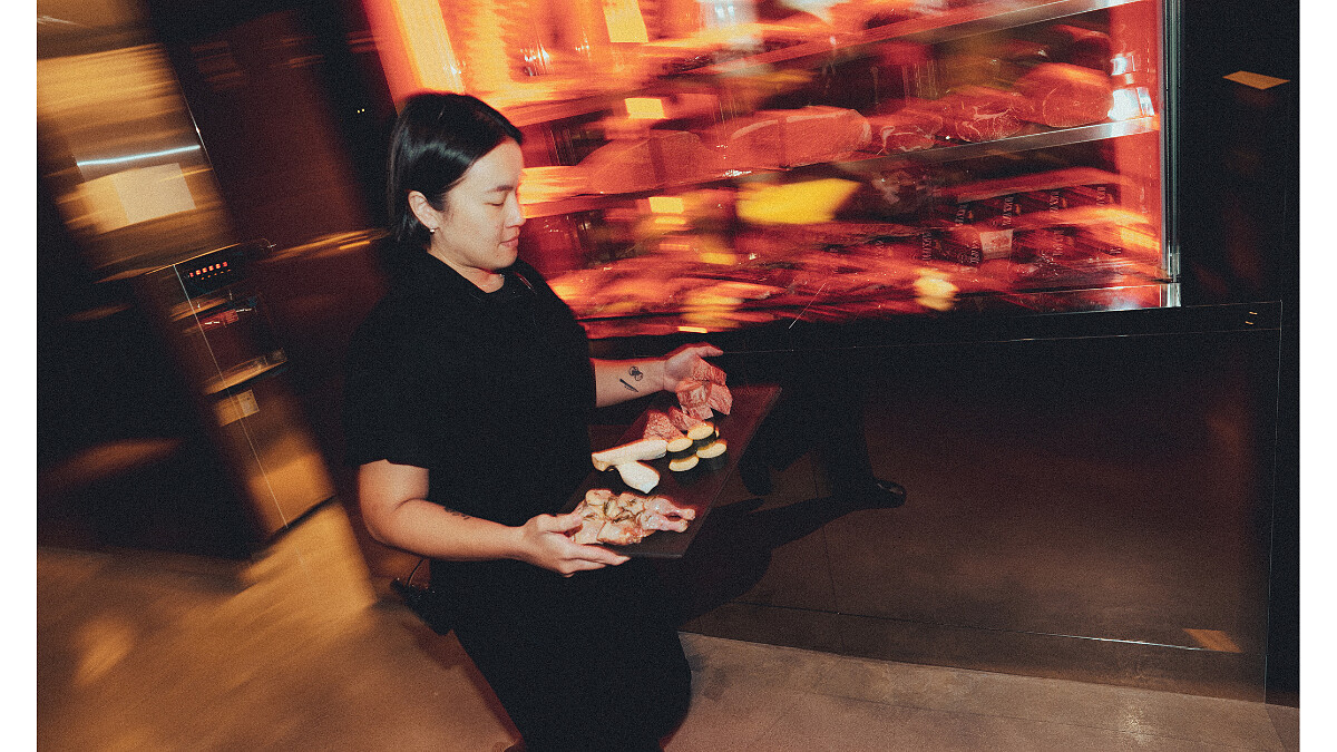 雖然是「複合式」定位,卻在沒有在任何環節上輕易妥協。不僅店內設有修肉室,提供現點現切冷藏原塊肉,更由專人桌邊服務,讓每一塊新鮮肉品都是最好的呈現。Sandy 表示,店名其中一個由來,便是自己堅持牛排要烤到「恰恰」,因此用鐵網取代鐵板,將食材特色毫不保留地展現,更有特別明顯的迷人炭香。而搭配非常縝密的抽風處理,幾乎不留餘味在身,可以完全安心享受美味的烤肉。