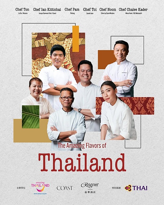 活動邀請了超過十位泰國最具代表性的名廚,第一波就端出六位精彩名單。包括泰國廚神 Chef Ian、現代泰菜代表 Chef Ton、世界最佳女廚師 Chef Pam、米其林一星餐廳「Wana Yook」的 Chef Chalee Kader 與「Saneh Jaan」主廚 Chef Toi,以及擁有「料理鐵人」的之稱 Chef Noom。這是台灣餐飲圈第一次匯集如此多名廚,真實呈現了泰國 Fine Dining 的多樣性,他們打造的「泰味新境 The Amazing Flavors of Thailand」菜色,都圍繞著「COAST」以海鮮為基底,串起泰國飲食文化的深度與層次的料理精神。