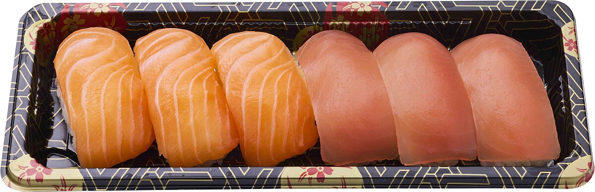 經典的生魚片組合,主要包含鮭魚和鮪魚。它滿足了對生食有渴望的消費者,是爭鮮gogo外帶生食類中最受歡迎的品項之一。