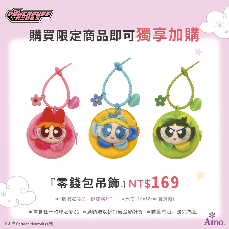 除了甜點之外,阿默蛋糕同步祭出多款聖誕限定小禮,讓粉絲在享受美味同時,把滿滿節慶氛圍帶回家。即日起只要購買任一聯名品項,就能獲得「飛天小女警限定貼紙」 一張;若消費累計滿650元能加碼領取「限定明信片」,收藏度滿分。想要更多驚喜的朋友,也能加購169元入手超可愛「零錢包吊飾」,掛在包包上也萌翻!